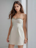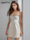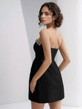 2025 Sexy Women Three-Dimensional Rhinestone Design Dress Strapless Sleeveless A-Line Backless Mini Dress Cocktail Party Vestido