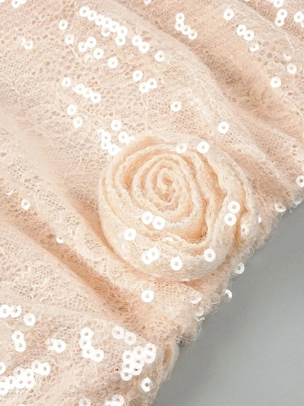 2025 Sexy Women's 3D Flower Shining Glitter Maxi Dress with Diagonal Collar Long Sleeve Bodycon Long Dress Evening Club Vestidos