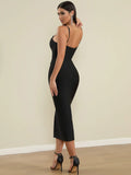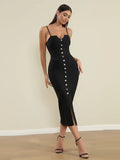 2025 Sexy Women'S Bandage Dress Spaghetti Strap Sleeveless Rhinestone Button Design Bodycon Backless Split Midi Dresses Vestidos