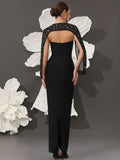2025 Sexy Women's Light Luxury Nail Bead Shawl+Strapless Sleeveless Bandage Dress Set Fashion Bodycon Long Dress Party Vestidos