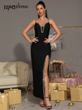 2025 Sexy Women's Nail Diamond Design Bandage Long Dress Spaghetti Strap Sleeveless Bodycon Split Dress Evening Party Vestidos