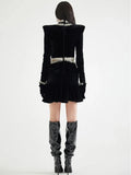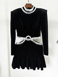 2025 Sexy Women's Open Waist Tassel Velvet Dress Stand Collar Long Sleeve Slimming Mini Dress Celebrity Evening Party Vestidos