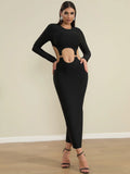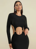 2025 Spring Women's Open Waist Design Black Bandage Dresses O-Neck Long Sleeve Bodycon Long Dress Evening Club Party Vestidos