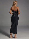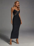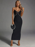 2025 Spring Women's Water Diamond Chain Strap Sleeveless Bandage Dress Patchwork Bodycon Long Dress Evening Club Party Vestidos