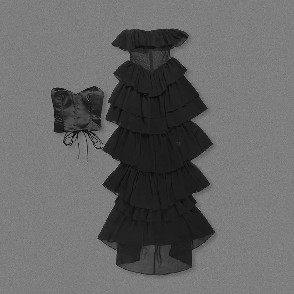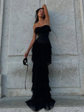 2025 Women Sexy Strapless Ruffle Slim Maxi Dress for cummerbund Elegant Sleeveless Lady Evening Party Gowns Female Robes