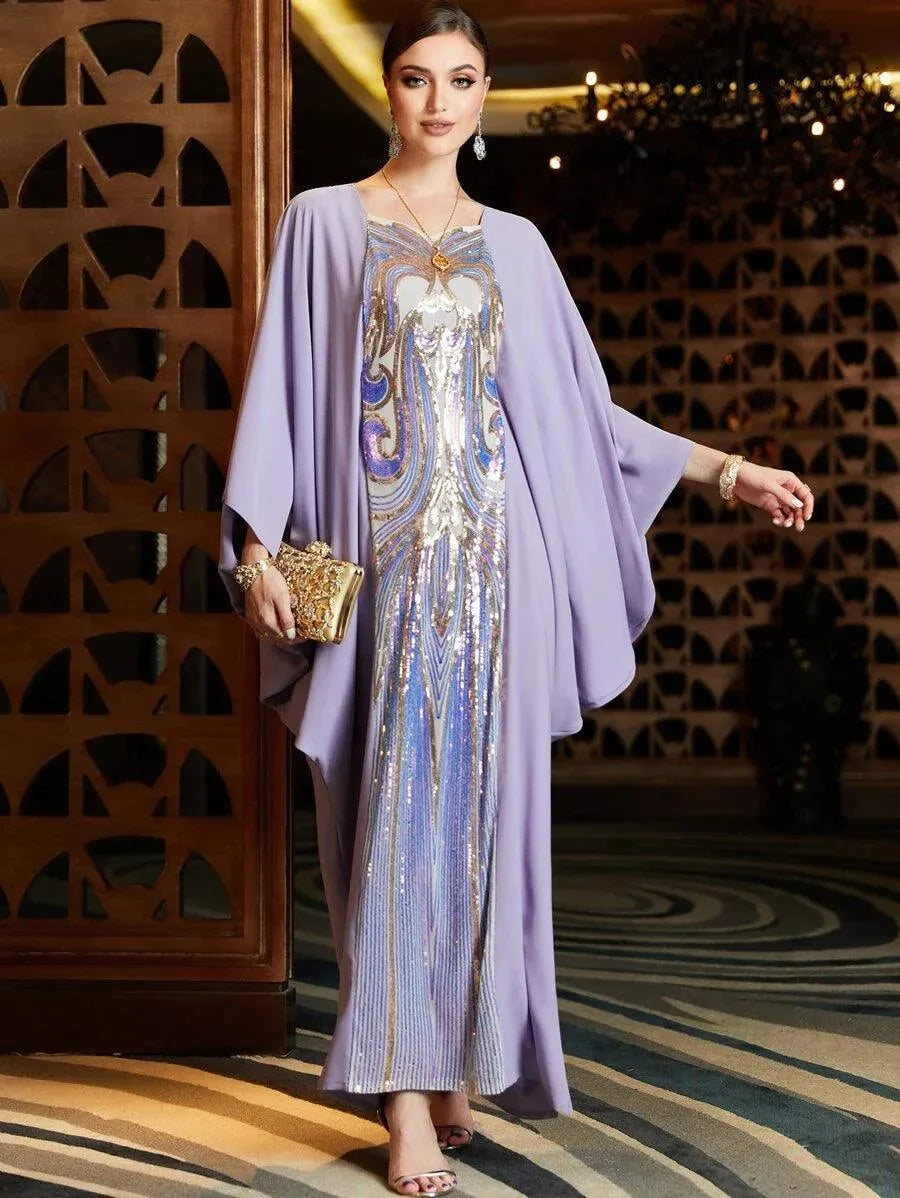 Abayah voor vrouwen Dubai Basic Chic Solid Sequins Batwing Sleeve Elegante moslim Zomer Lange jurk