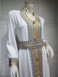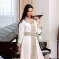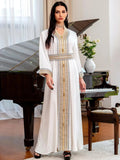 Abaya's Marokkaanse Effen Kant Tape Ingekeepte V-hals Lange Mouw Casual Riem Kleding Moslim Lange Bescheiden Jurken Vrouwen