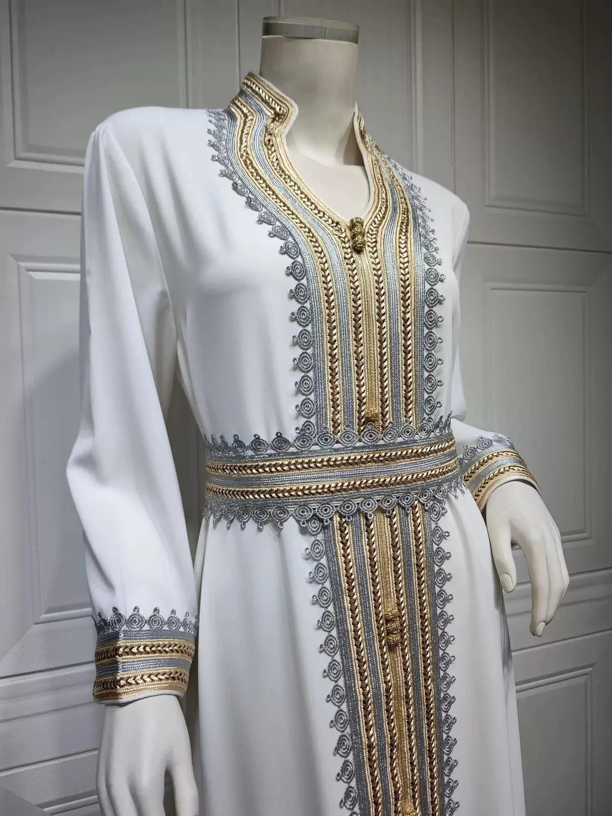 This bespoke, handmade dress is crafted with exceptional attention to detail using premium materials. Each stitch reflects the artistry and dedication of our skilled artisans, ensuring a timeless and elegant look. Designed to complement every season—Spring, Summer, Fall, and Winter—this dress is as versatile as it is beautiful.
