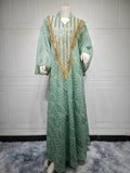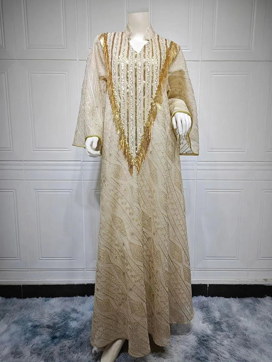 Arabische Dubai Mesh Pailletten Borduurwerk Avondjurk Voor Vrouwen Jalabiyat Moslim Turks Casual Losse Lange Mouw Kleding
