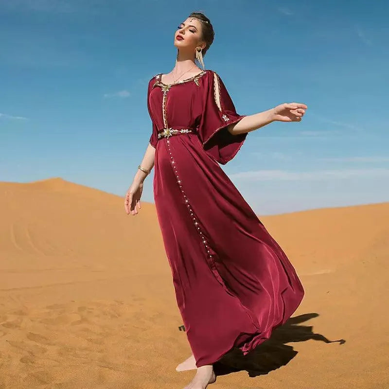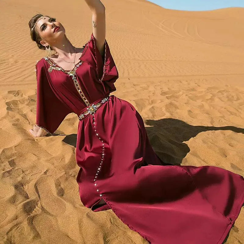 Avondfeestjurken Handgenaaide diamanten Off-the-shoulders Abaya's met riem Marokkaanse Saoedische vrouwen Kaftan Islamitische kleding