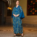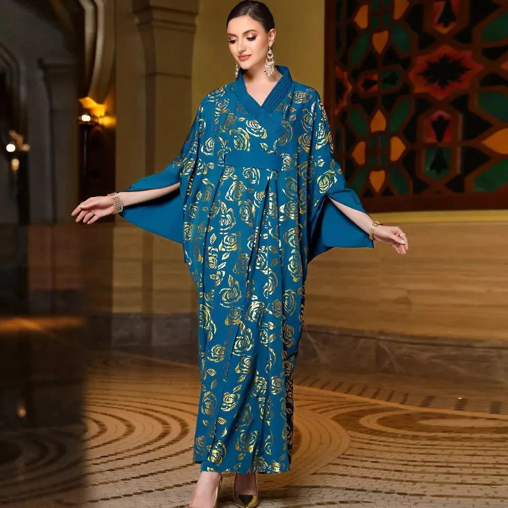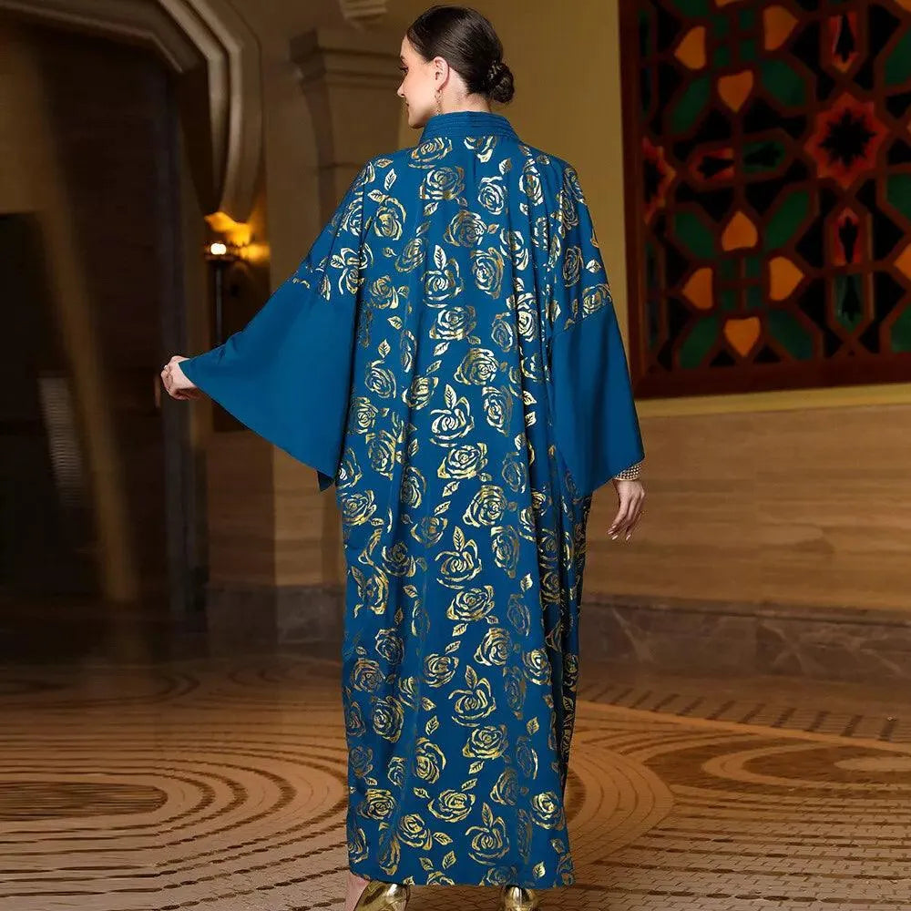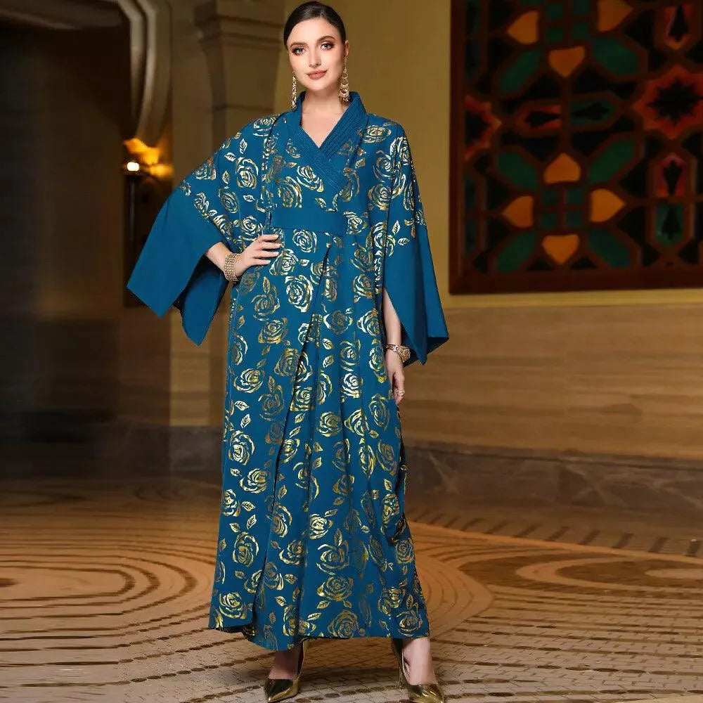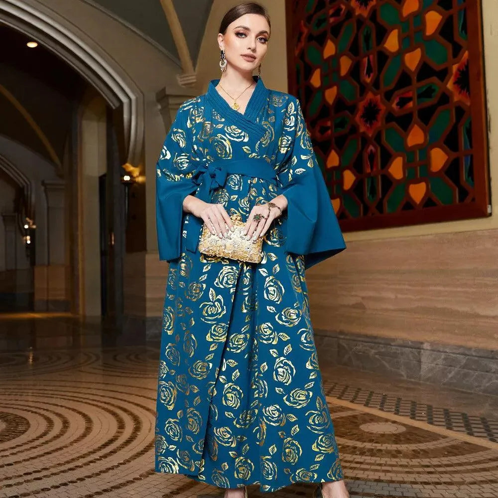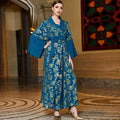 Baju Muslim Voor Vrouwen Vintage Print Casual Losse Kimono Abaya Dolman Mouw Riem Religieuze Gewaden Ramadan Dragen