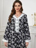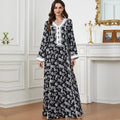 Bloemenprint Zwarte Jalabiya Oosterse Jurk Islamitische Kleding Moslim Abaya Ramadan Eid Dubai Turkse Hijabi Gewaad (Geen Sjaal)