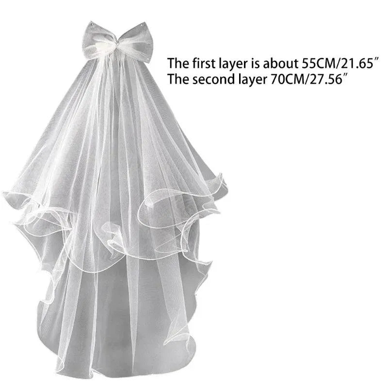 Bruidssluier met kam voor kinderen Bruidshaaraccessoires voor meisjes 2-laags strikversieringsaccessoires voor foto's