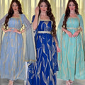 Dubai Jurk Abaya voor Ramadan Gurban Arabische Dubai Geborduurde Applicatie Jurk Spier Feest Diner Jurk Hoge Taille Lange Feestjurk