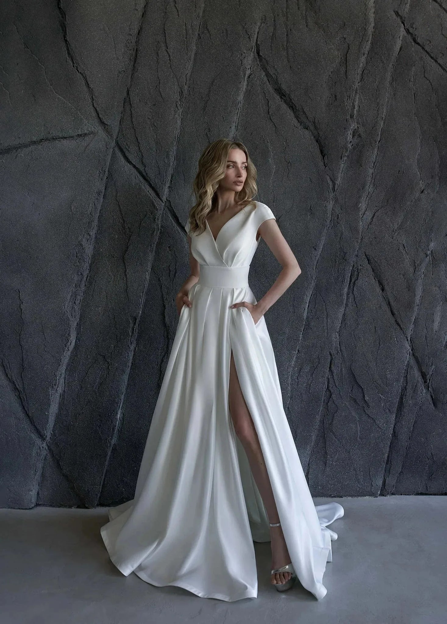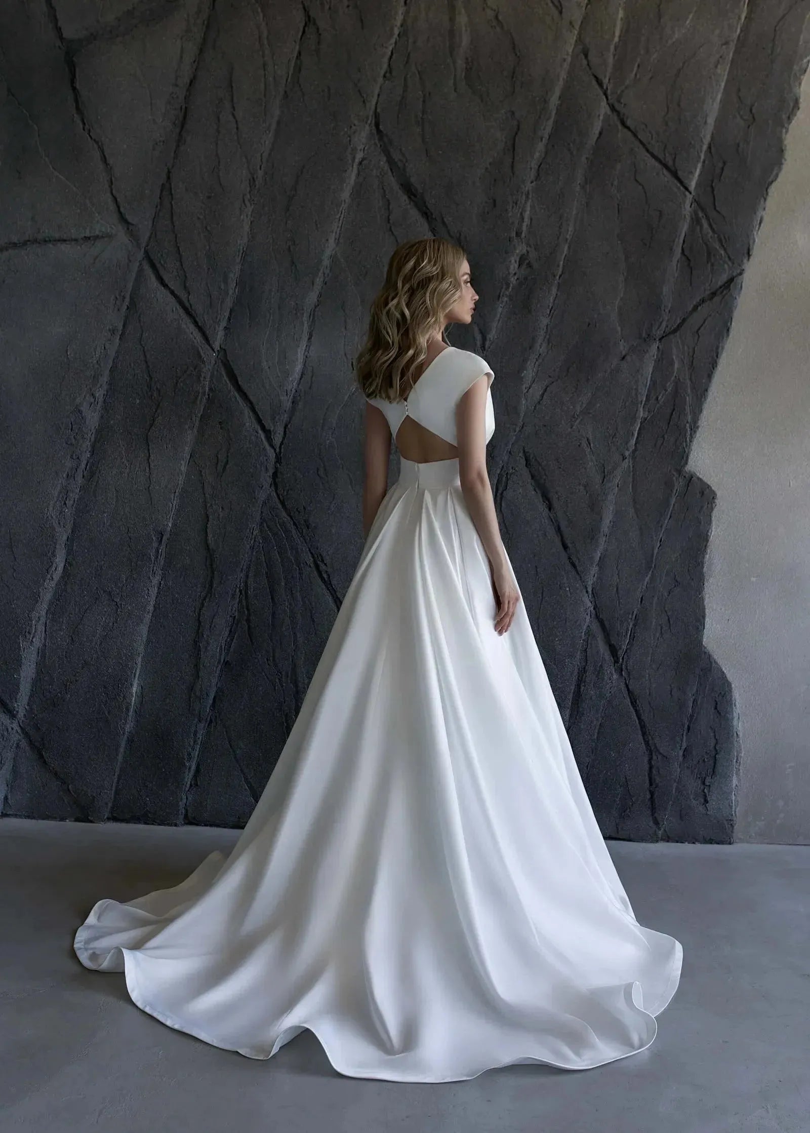 Elegante, eenvoudige A-lijn trouwjurk met strapless design en V-halslijn voor een verbluffende look
