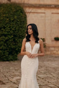 Elegante manteljurk met strapless V-halslijn en natuurlijke taille voor een verbluffende bruidslook