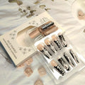 French Tips Press on Nails Long Fake Nails Black White Anime Comics Design Full Cover Punk Acrylic Artificial False Nails 24PCS