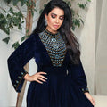 Autumn Velvet Warm Fashion Muslim Women Diamond Abaya Long Maxi Dresses Dubai Kaftan Turkey Arab Islamic Eid Party Gown Jalabiya Navy