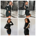 Black Women Bandage Dress High Neck Long Sleeve Sexy Halter Beaded Tassel Dress Bodycon Dress Club Party Dresses