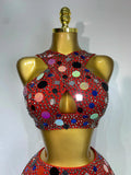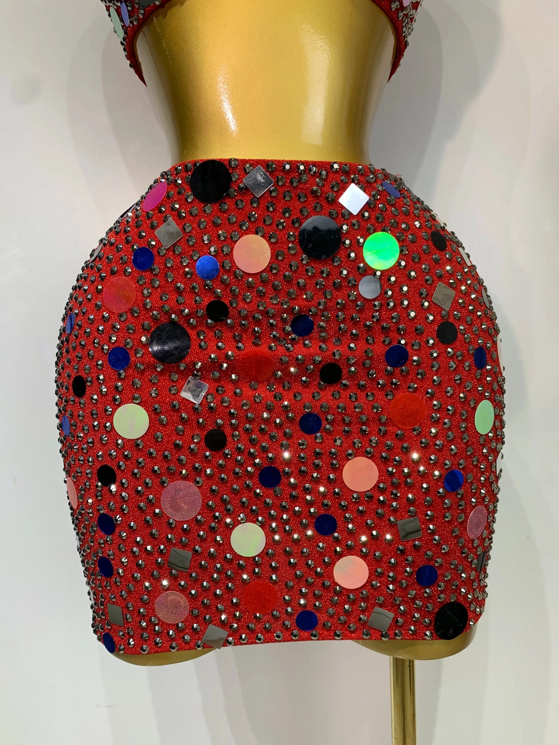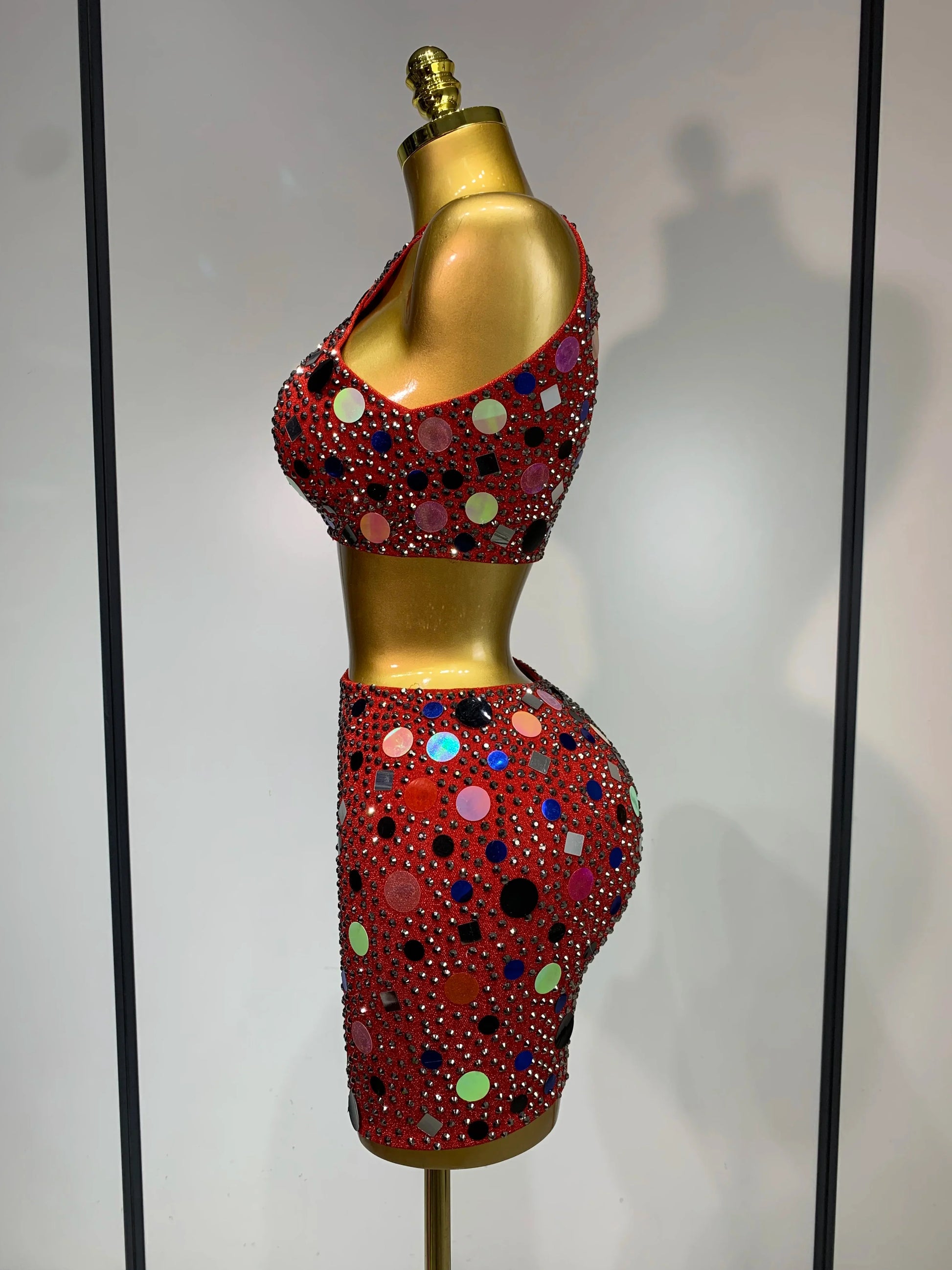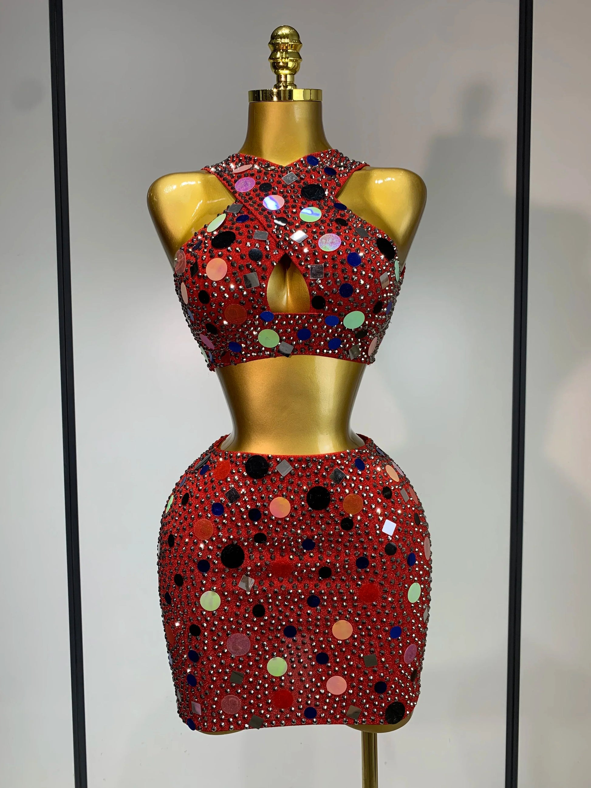 Luxury Rhinestone Sequin Sexy Two Piece Set New Fashion Nightclub Sparkly Perform Stage Costume Birthday Dress