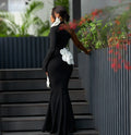 Regardless of the color you select for your dress, the white, black, or ivory lace accents will remain consistent. This applies to designs where the bodice and skirt are in different colors, maintaining a harmonious and sophisticated aesthetic.
