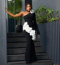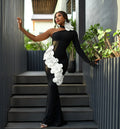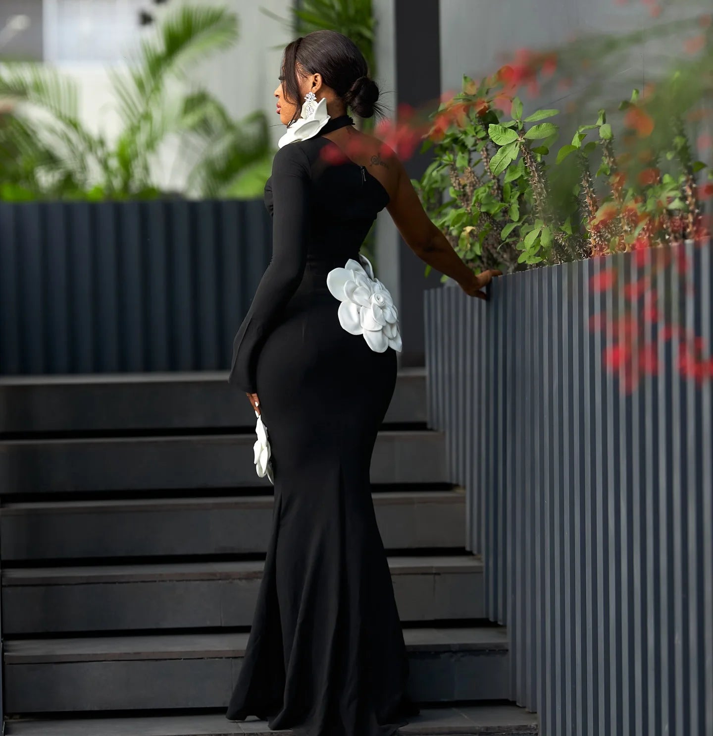 Women Sexy One Sleeve White Florals Bodycon Long Bandage Dress Fashion Nightclub Party Cocktail Outfit Vestido
