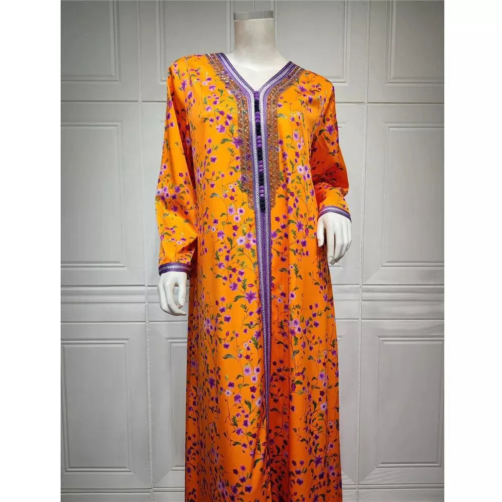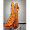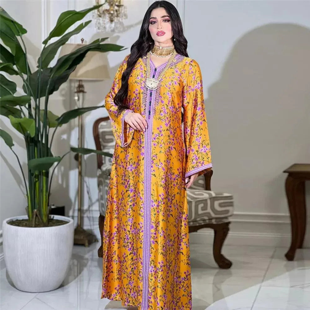 Kaftan Dubai Luxe Diamanten V-hals Kant Tape Maxi Jurk Chic Elegant Bloemenprint Moslim Turks Feest Avondjurk Kleding