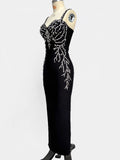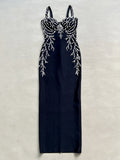 Ladies Diamond Beads Spaghetti Strap Backless Design Celebrity Evening Club Black Sleeveless Sexy Maxi Bandage Dress Vestidos