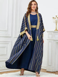 Luxe Caftan Marocain Femme Avond 2 Stuk Abaya Set Jalabiya Vrouw Blauwe Streep Pailletten Gordel Gewaad Africano Mujer