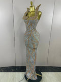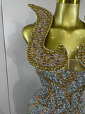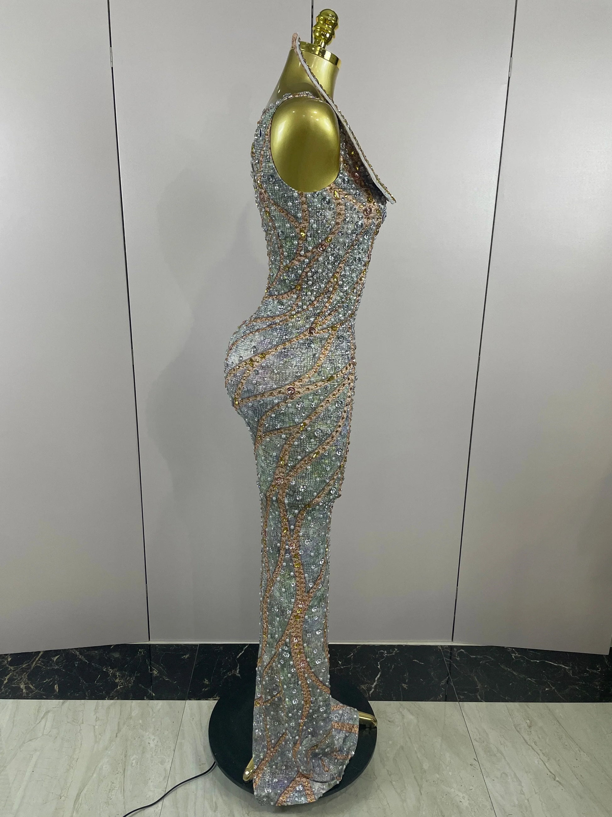 Luxury Crystals Diamonds Slit elegant Sheath Fishtail Dress Women Sexy Evening Party Performance Photoshoot Stage Dress