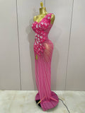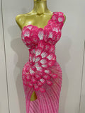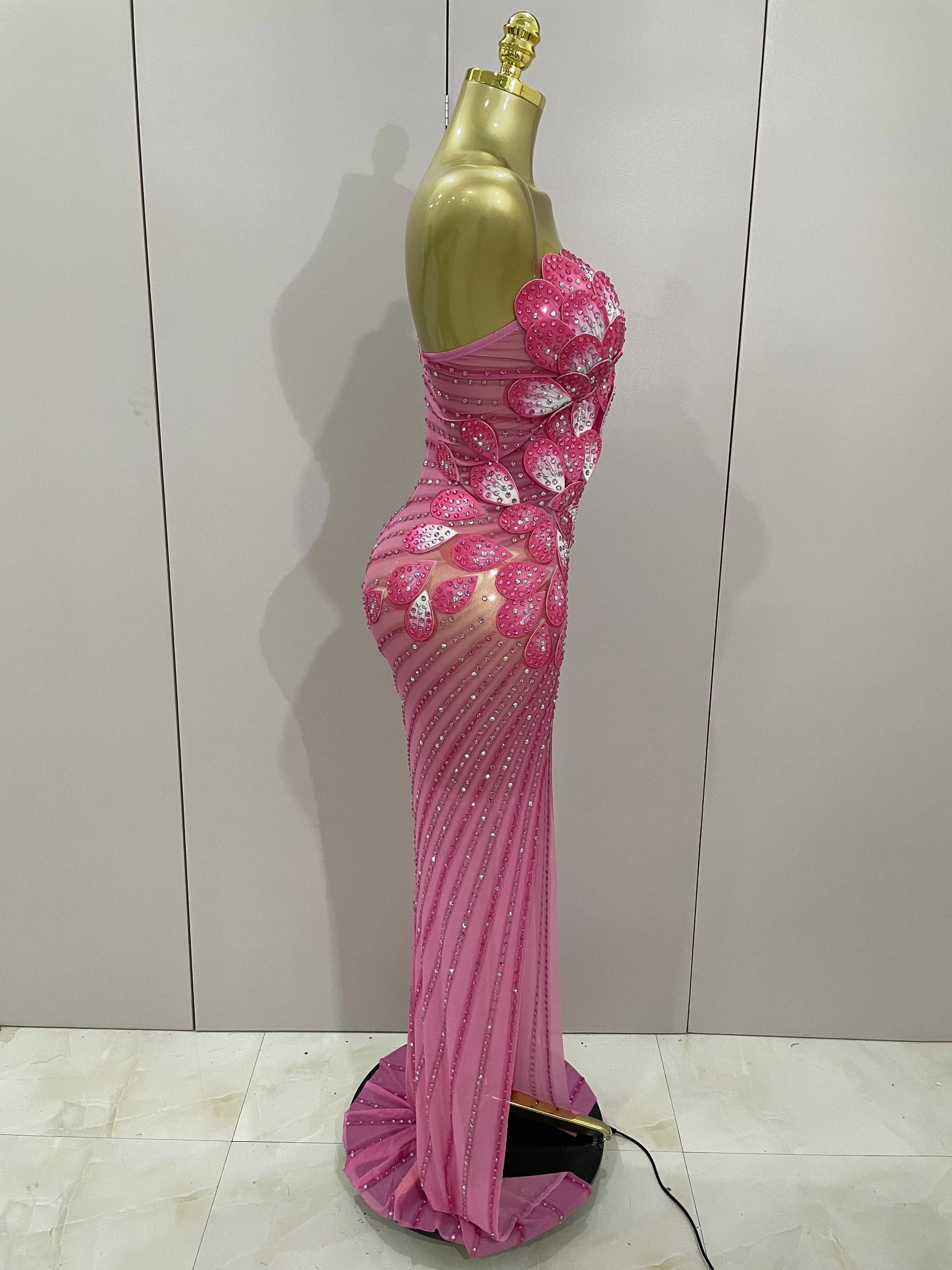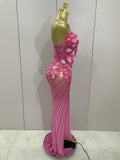 Luxury Shinning Rhinestones Flowers Sexy One Shoulder Bodycon Maxi Long Dress Women Evening Birthday Party Stage Costume