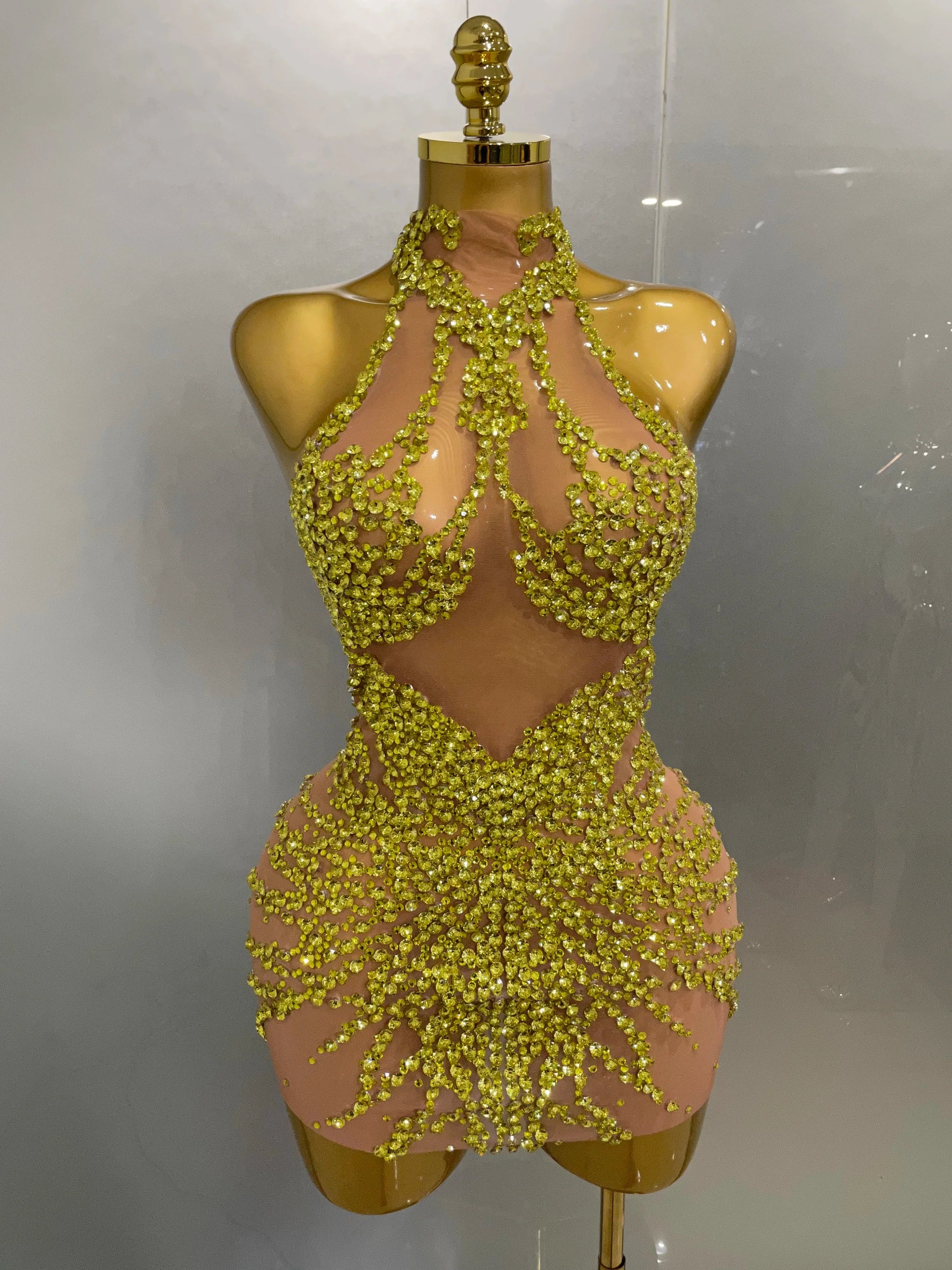 Luxury Sparkle Rhinestones Mesh Transparent Prom Dress New Women Sexy Birthday Celebrate Party Club Prom Outfit Bar Costume