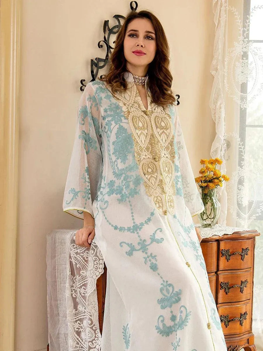 This bespoke, handmade dress is crafted with exceptional attention to detail using premium materials. Each stitch reflects the artistry and dedication of our skilled artisans, ensuring a timeless and elegant look. Designed to complement every season—Spring, Summer, Fall, and Winter—this dress is as versatile as it is beautiful.