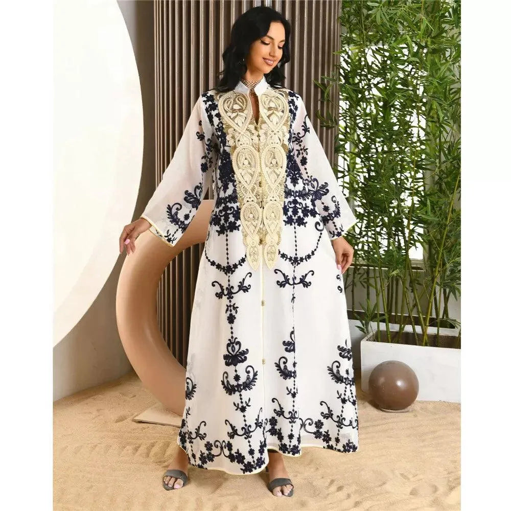 Marokkaanse Caftan Moslimvrouw Jurk Eid 2022 Luruxy Geborduurde Kalkoen Arabisch Oman Dubai Jalabiat Islamitische Abaya's Jurken Avond