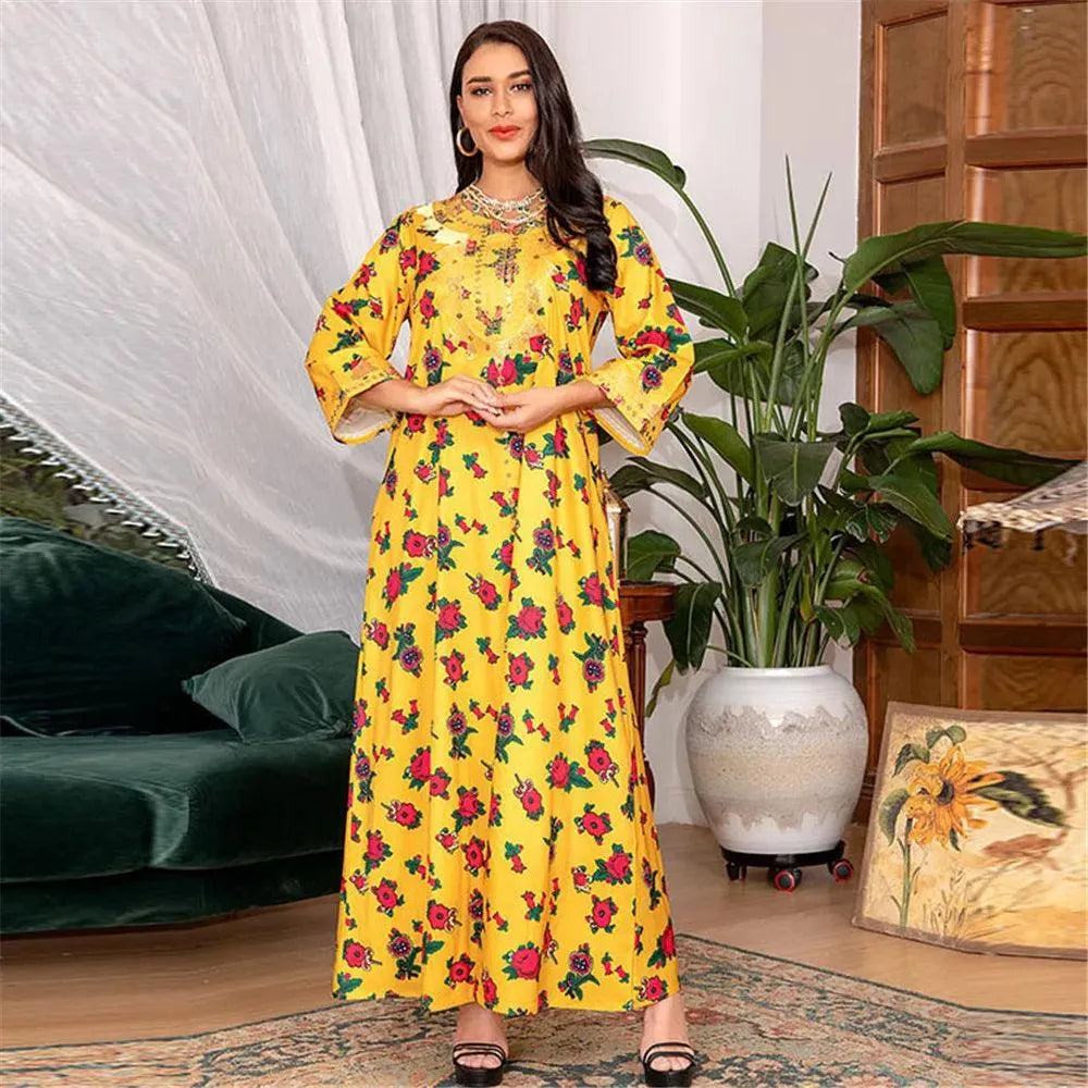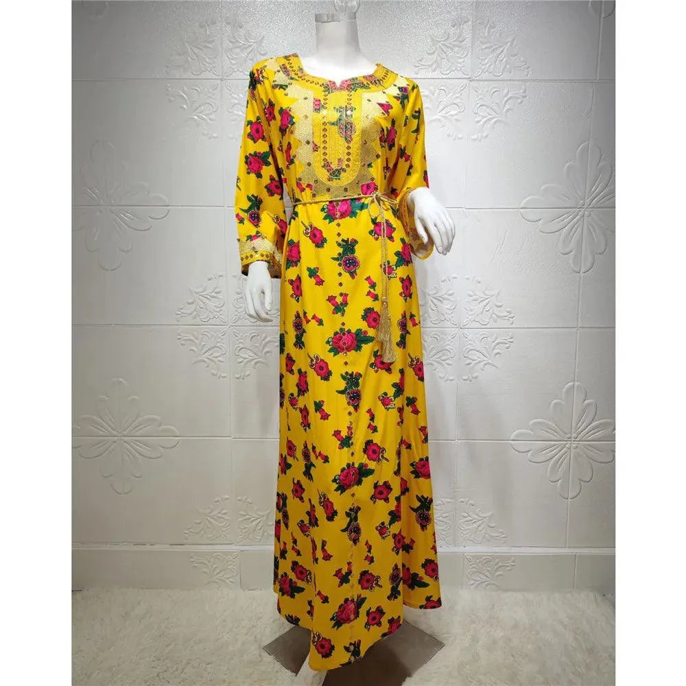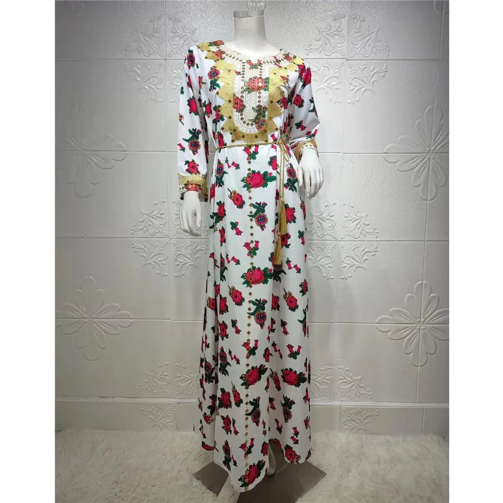 Marokkaanse moslim Abaya bloemenprint vrouwen lange maxi jurk Turkije Arabisch Dubai Eid feest femme Ramadan kaftan Jalabiya vestidos jurk
