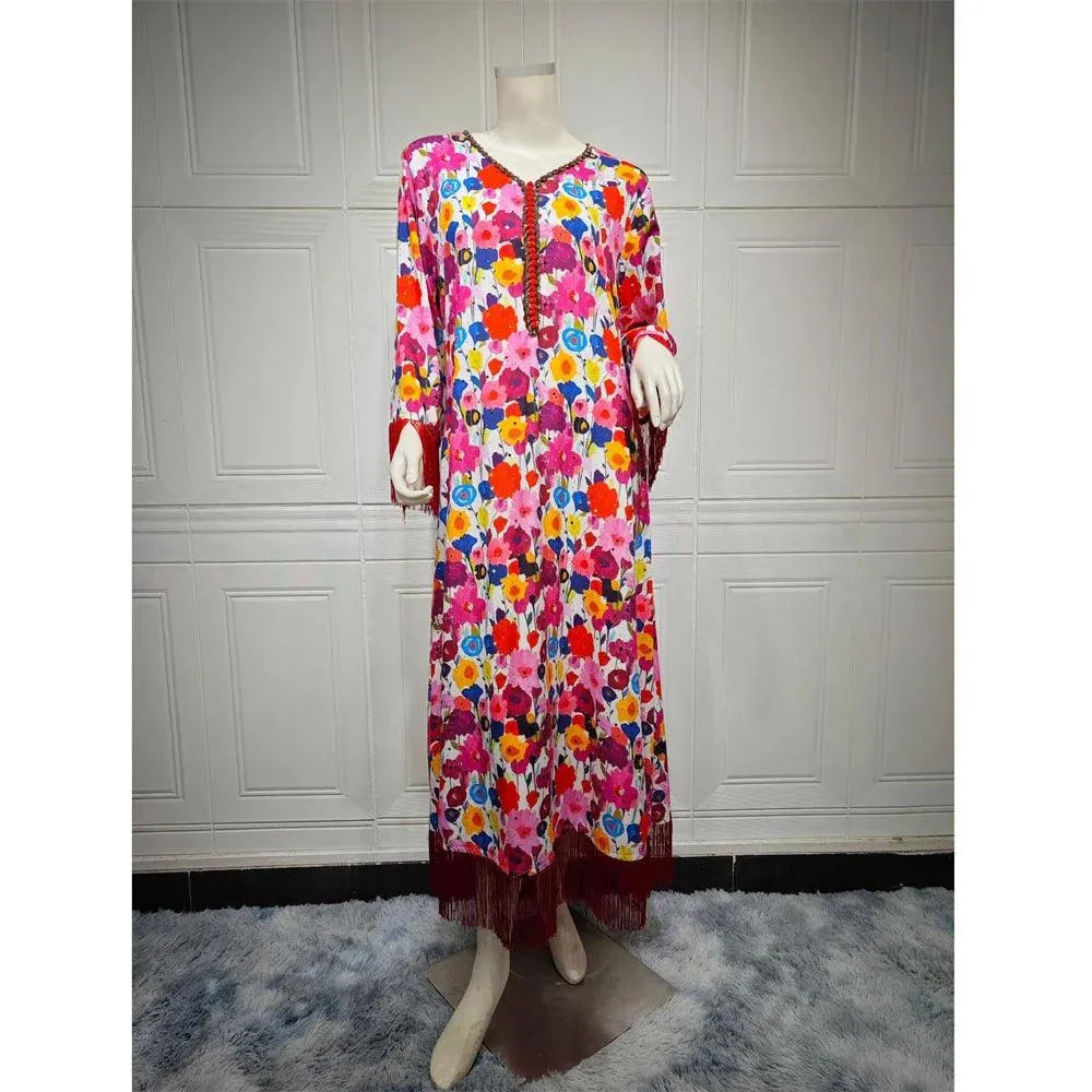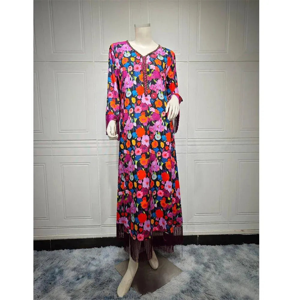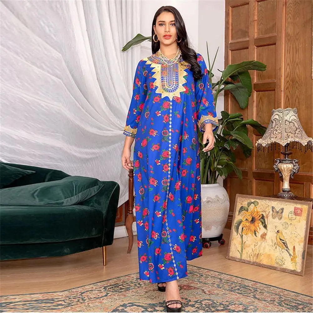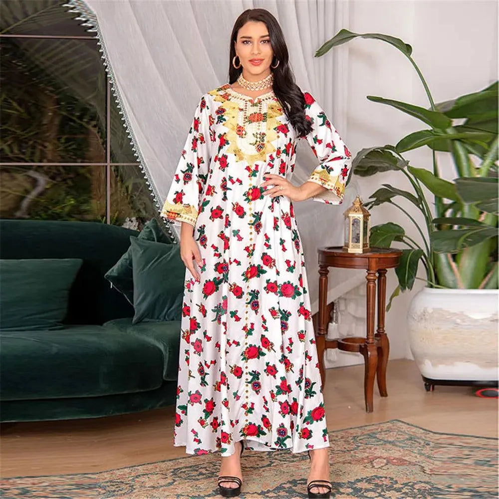 Marokkaanse moslim Abaya bloemenprint vrouwen lange maxi jurk Turkije Arabisch Dubai Eid feest femme Ramadan kaftan Jalabiya vestidos jurk