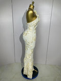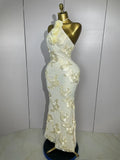 New Sexy Halter High Waist Slim Embroidery Floral Long Dress Women Celebrate Evening Party Prom Fashion Cocktail Outfit