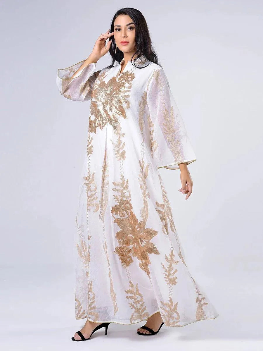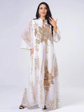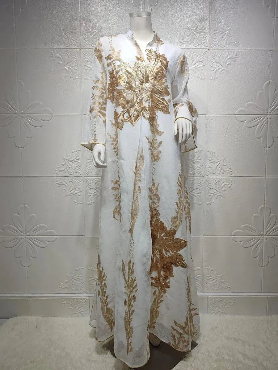 Pailletten geborduurde Abaya jurk voor vrouwen Marokkaanse Kaftan Turkije Arabische Jalabiya Witte islamitische etnische gewaad Eid Nieuw