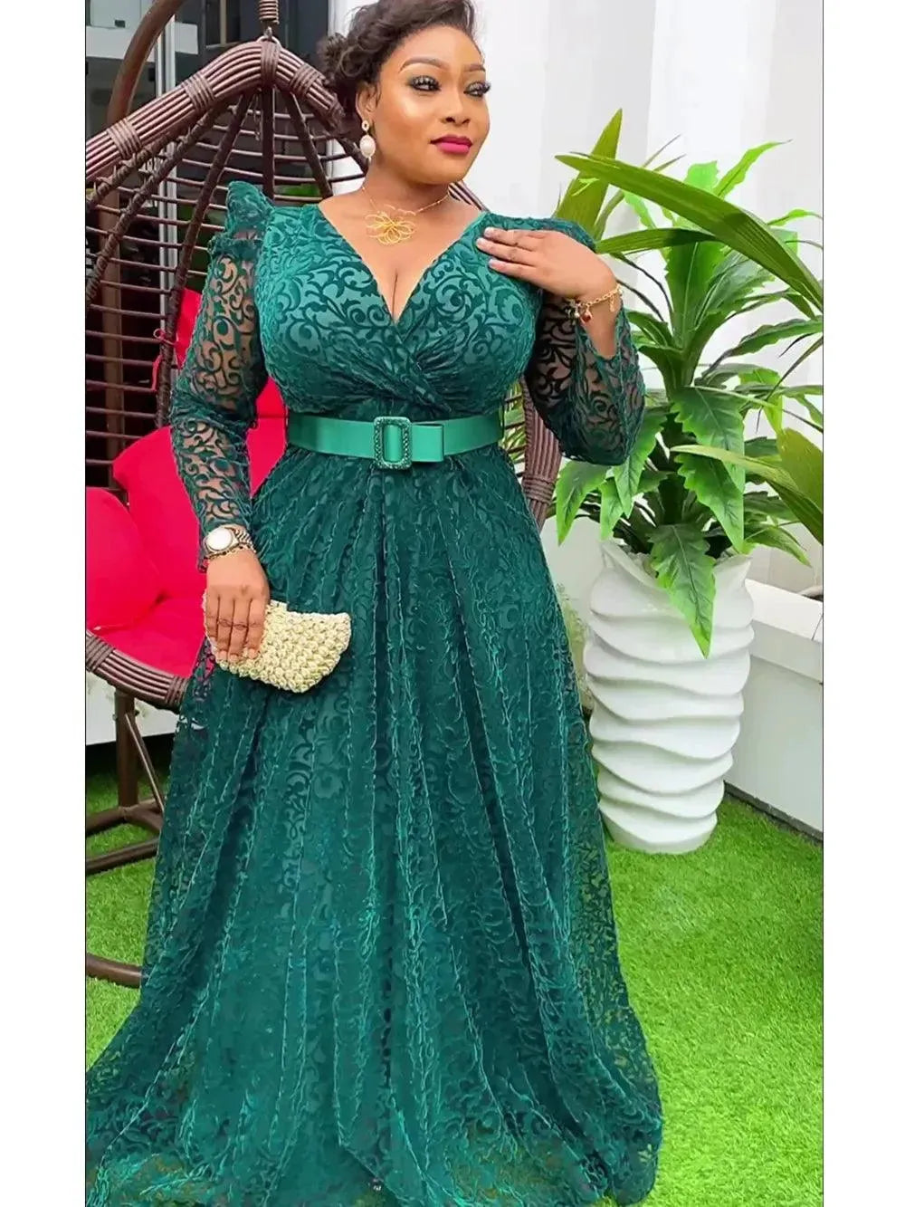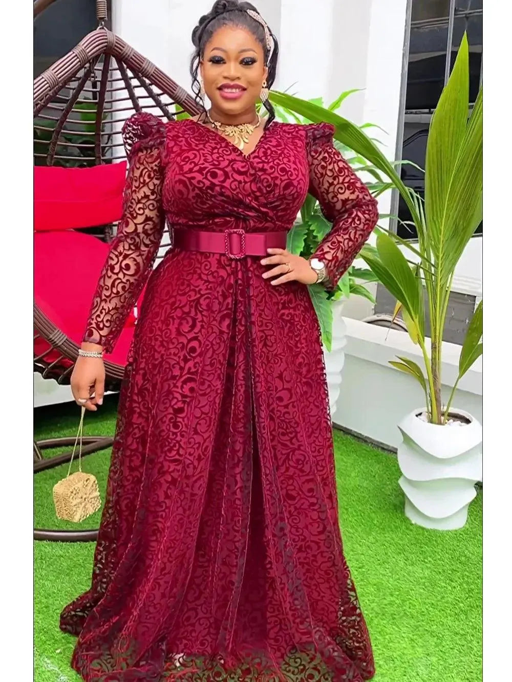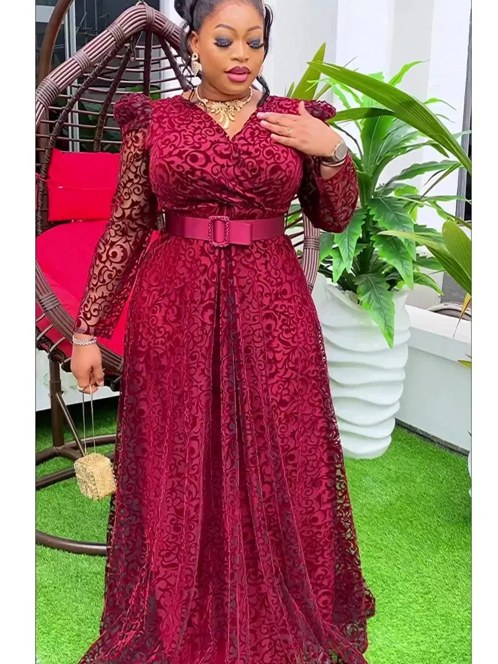 Plus Size Afrikaanse feestjurken voor vrouwen Nieuwe mode Dashiki Ankara kant trouwjurken Elegante Turkse moslim maxi-jurk