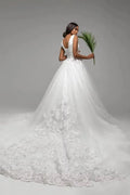 Prachtige A-lijn trouwjurk met bandjes, V-hals en kanten versieringen voor een verbluffende bruidslook