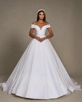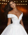 Prachtige A-lijn trouwjurken voor vrouwen Off-the-shoulder V-hals satijnen formele prinsessenmode bruidsjurken Vestidos De Novia