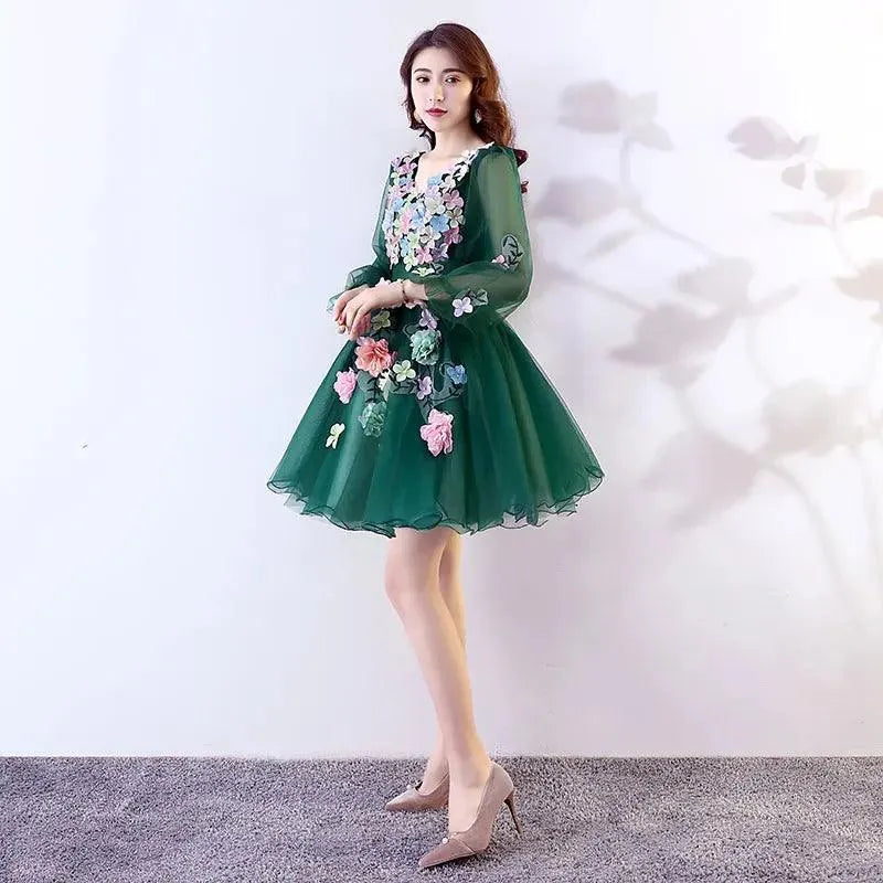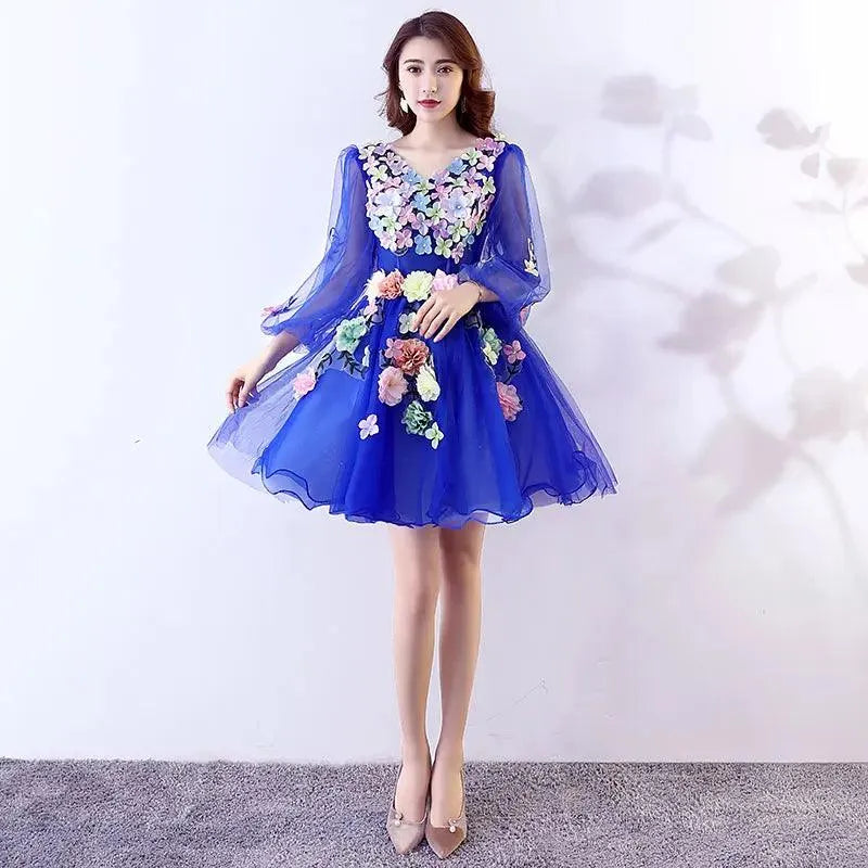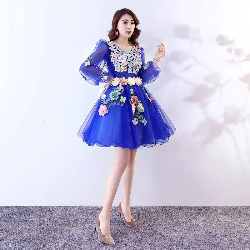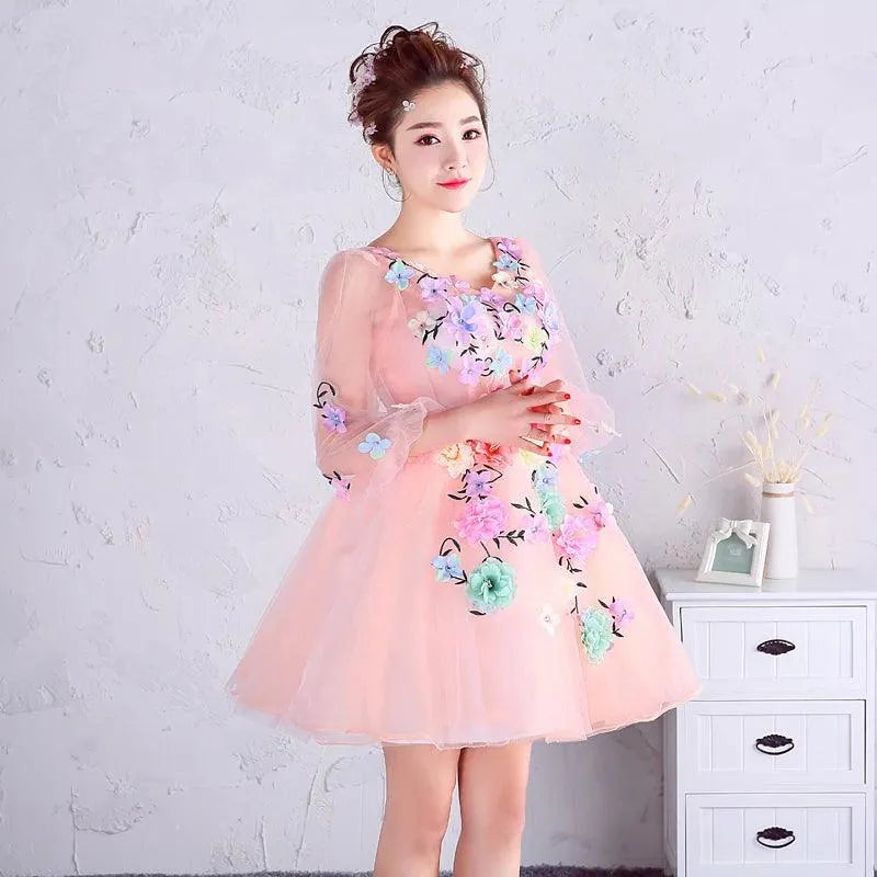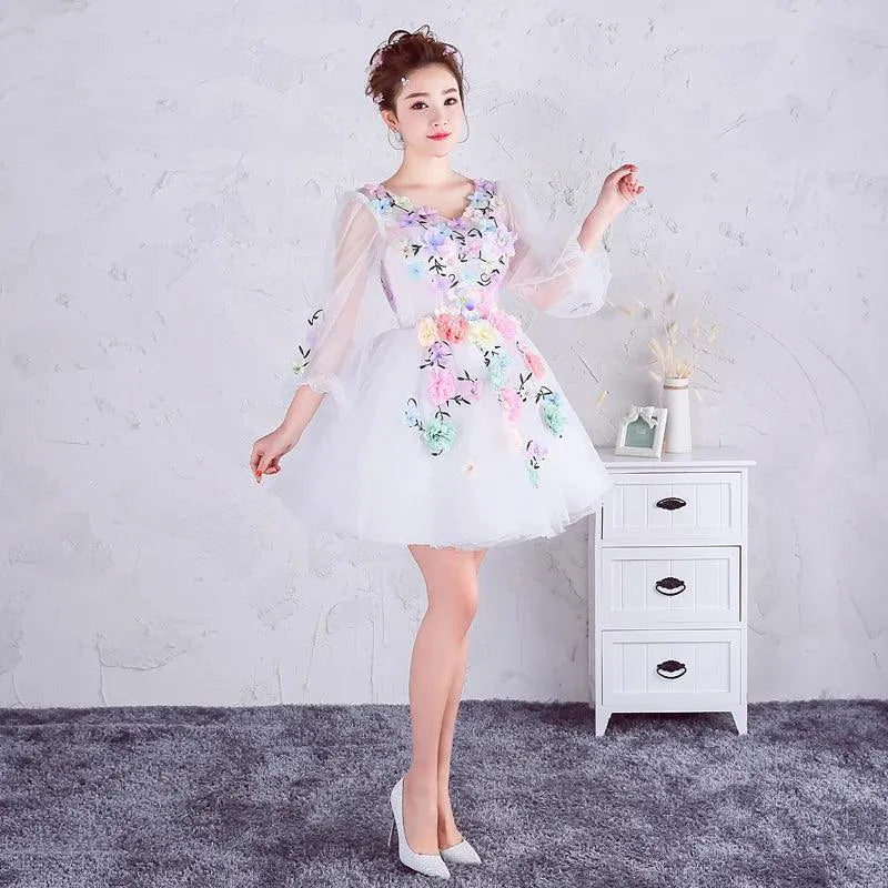 Quince Jurk | Bloemen Quinceanera Jurken Lange Mouw V-hals Knielengte Baljurk Prinsessenjurken De Anos Quinceanera Op Maat Gemaakt