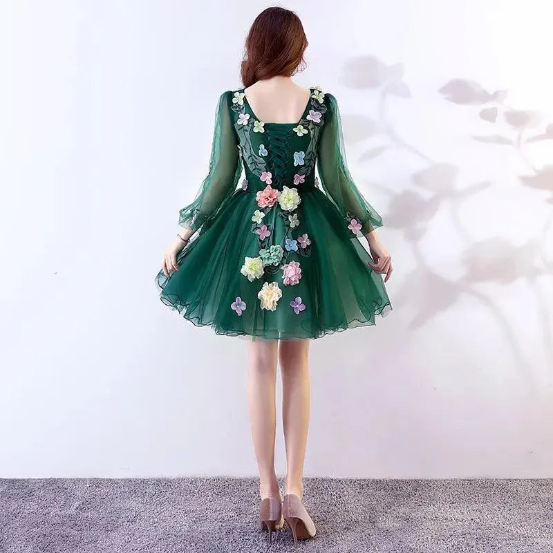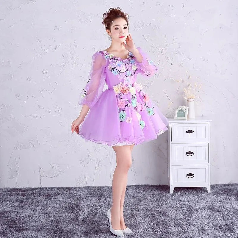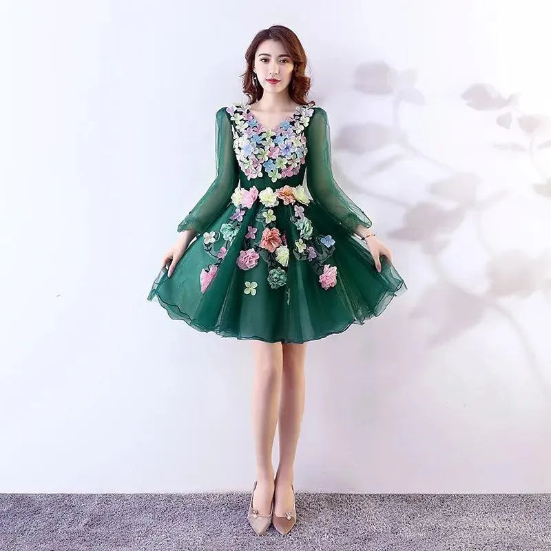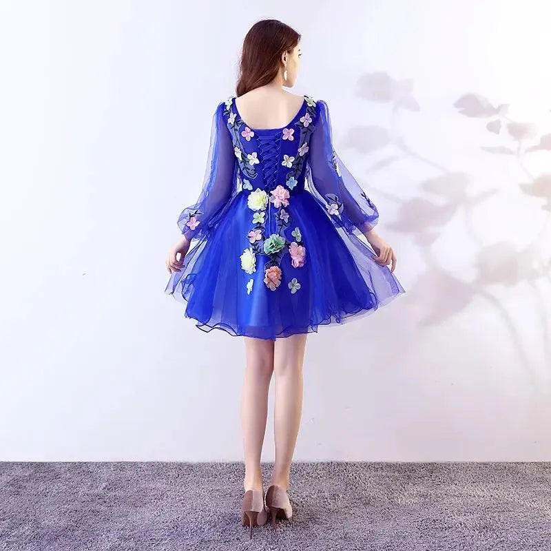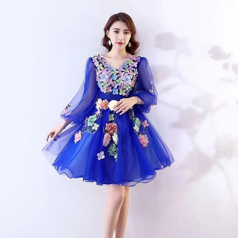 Quince Jurk | Bloemen Quinceanera Jurken Lange Mouw V-hals Knielengte Baljurk Prinsessenjurken De Anos Quinceanera Op Maat Gemaakt