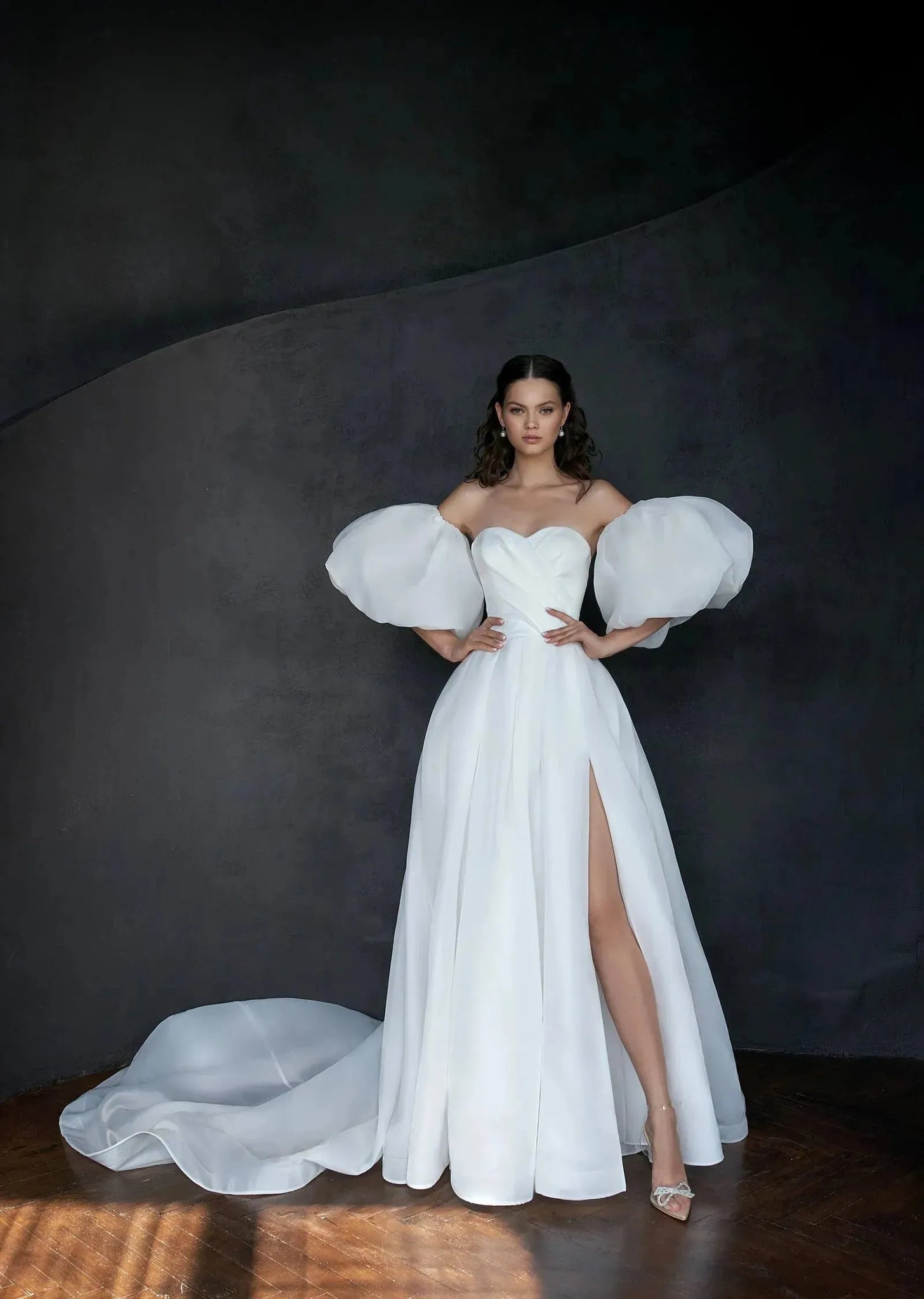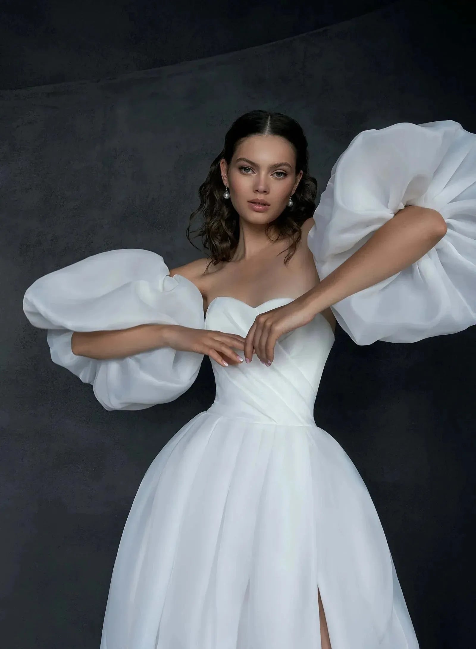 Romantische A-lijn pofjurk met pofmouwen en sweetheart-halslijn voor een verbluffende look