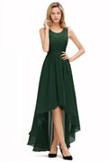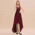 Roze Chiffon Lange Bruidsmeisjesjurken Hoog Laag Bruiloftsgast Feestjurk Mouwloos Kant Bloem vestido madrinha