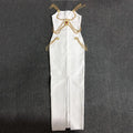 Runway Fashion Maxi Long Bandage Dress Open Fork Chains Strap Fashion Beading Bandage Dress Cocktail Party Bodycon Dresses 2025