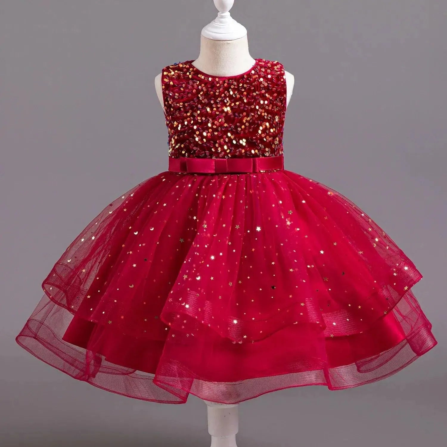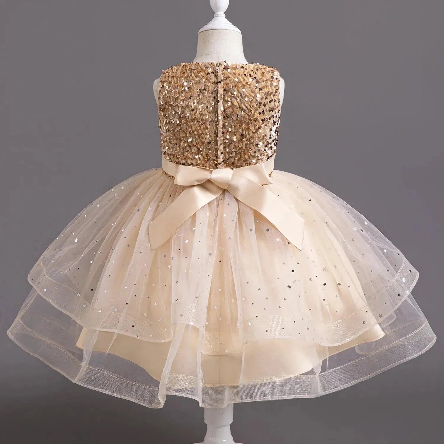Sequin Verjaardagsfeestjurken voor meisjes Mouwloos Tule Elegante Prinses Formele Prom Tutu Jurk Kinderen Bruiloft Avondjurk