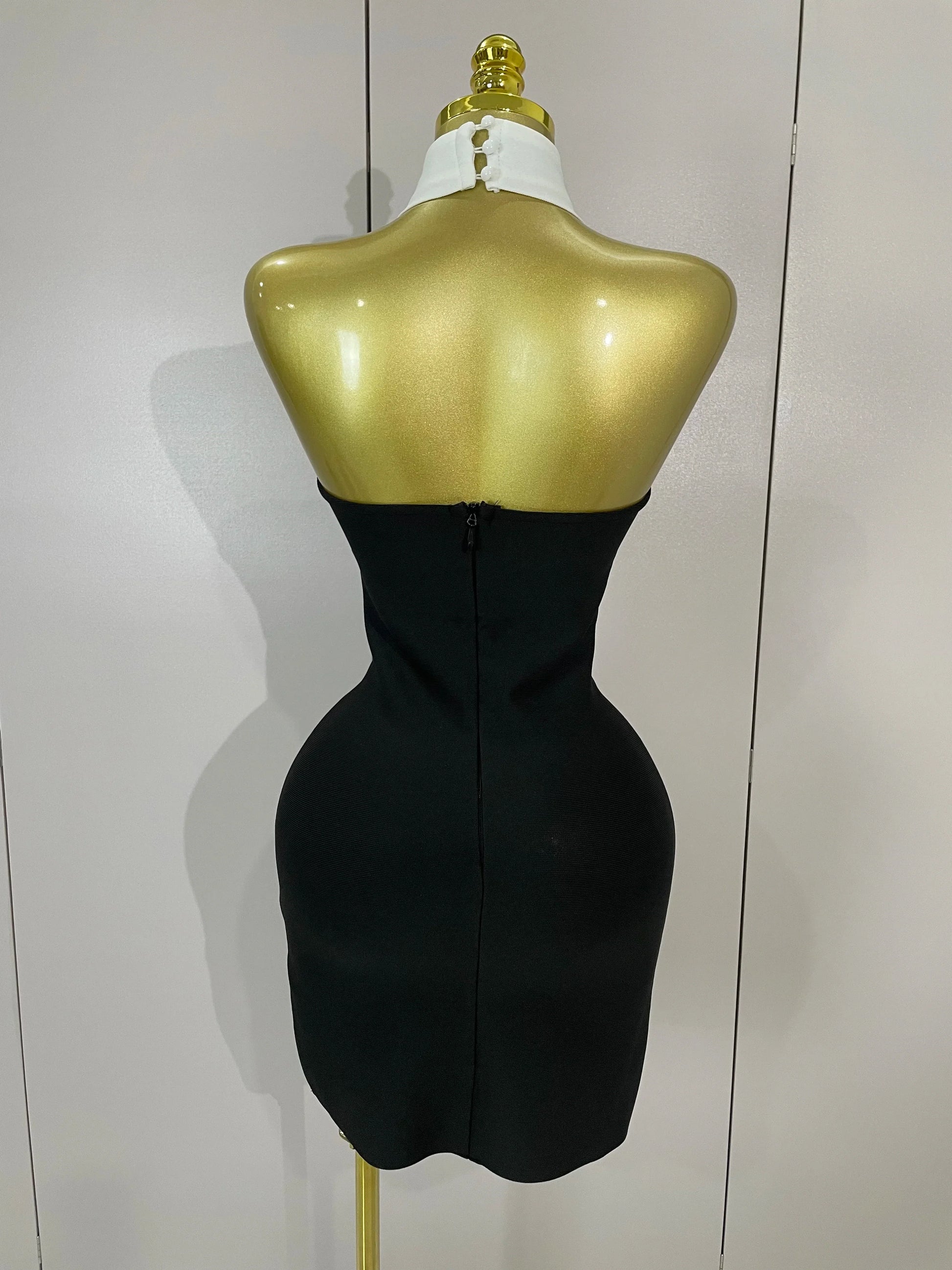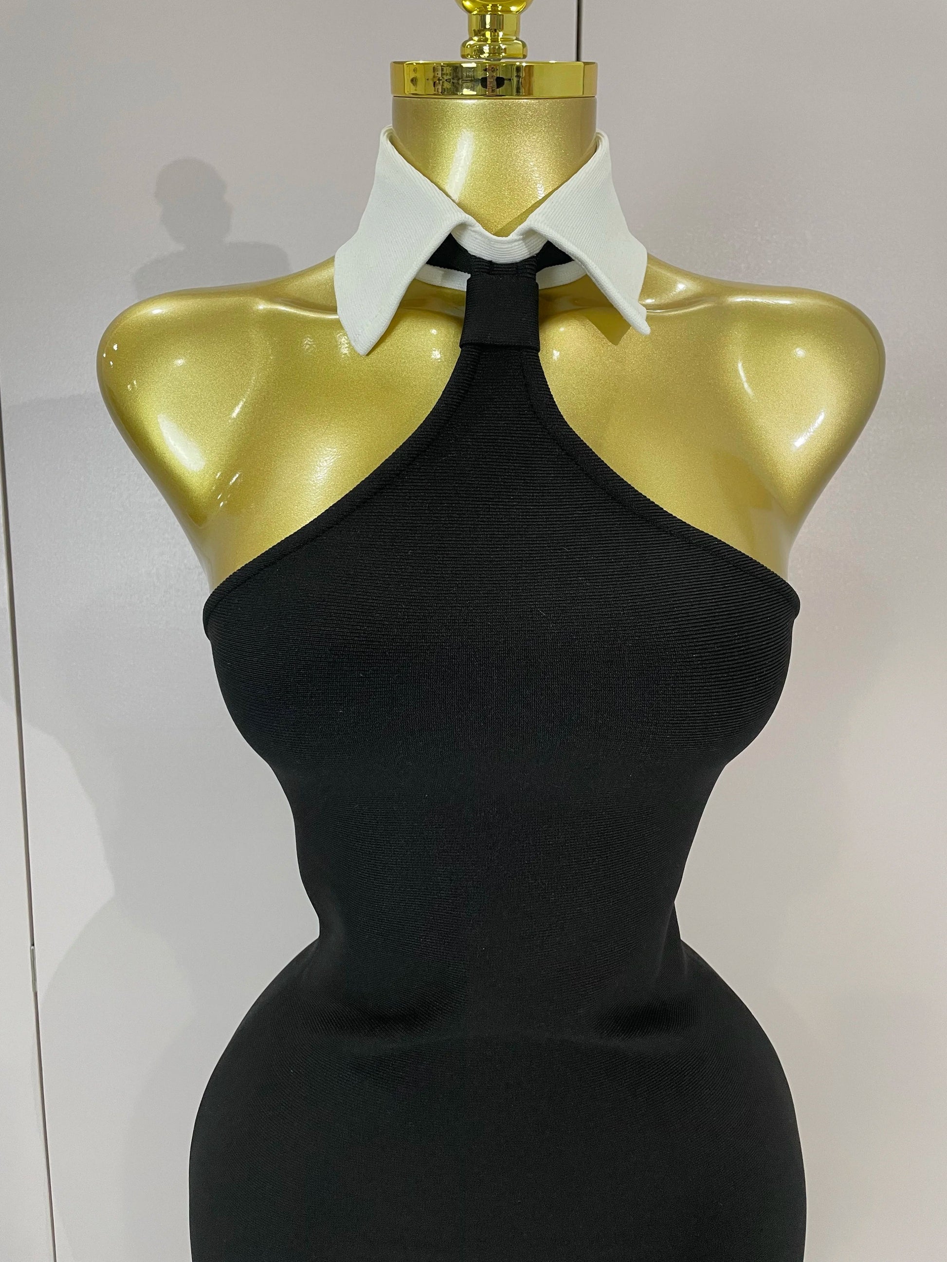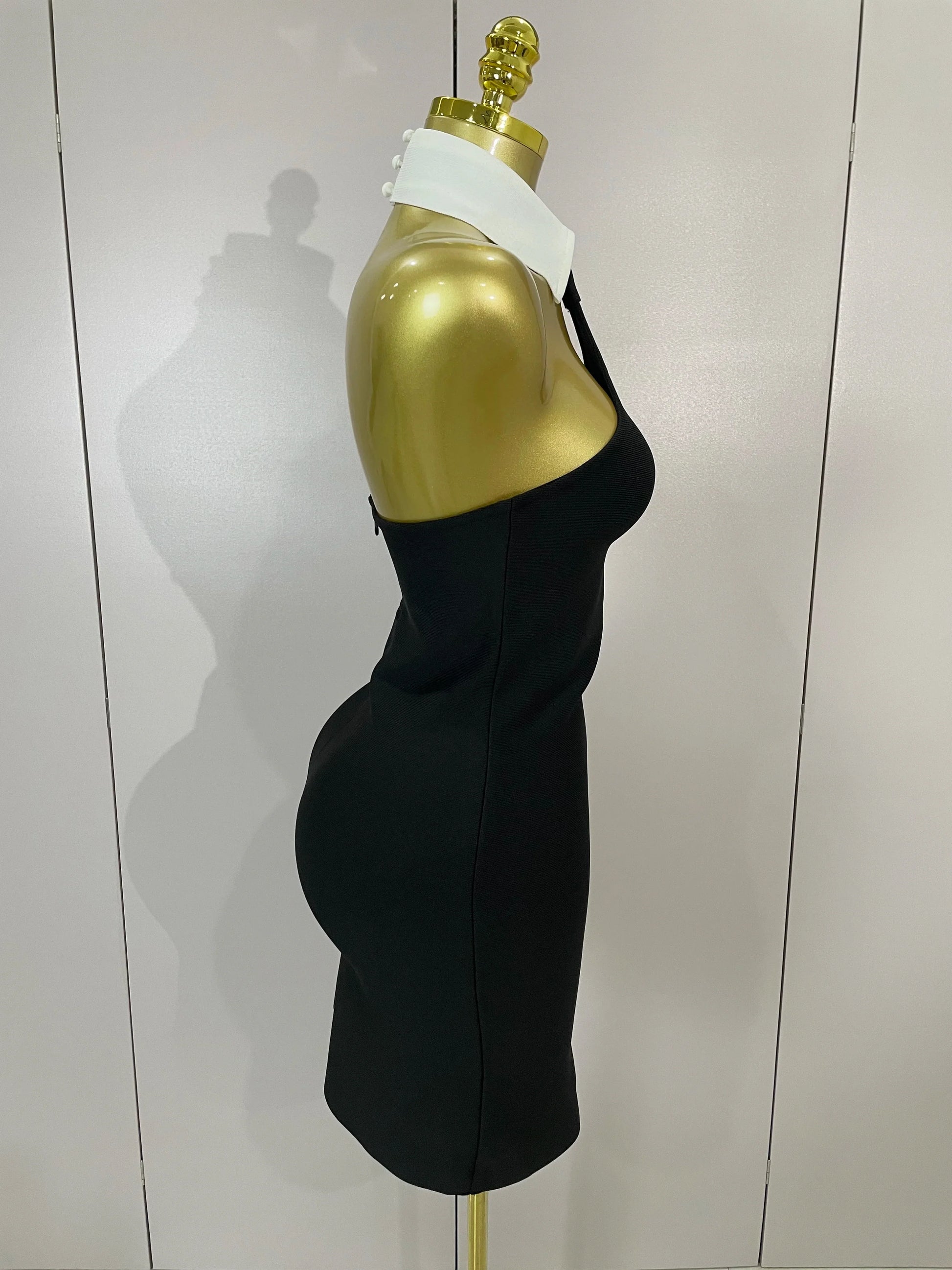 Sexy Backless White Shirt Collar Black Mini Bodycon Bandage Dress Women Elegant Evening Club Party Luxury Birthday Dresses
