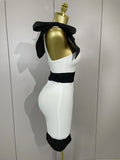 Sexy Bow Tie Black White Patchwork Bodycon Bandage Dress Women Celebrity Elegant Evening Club Party Birthday Dresses