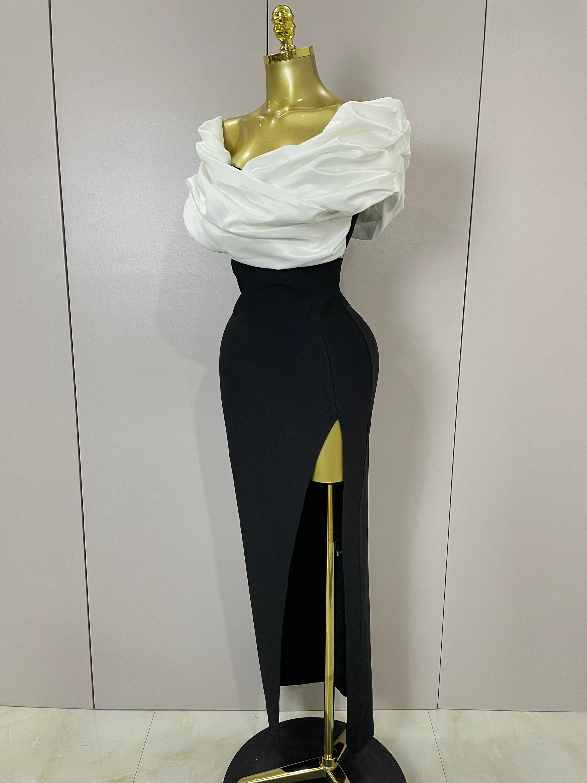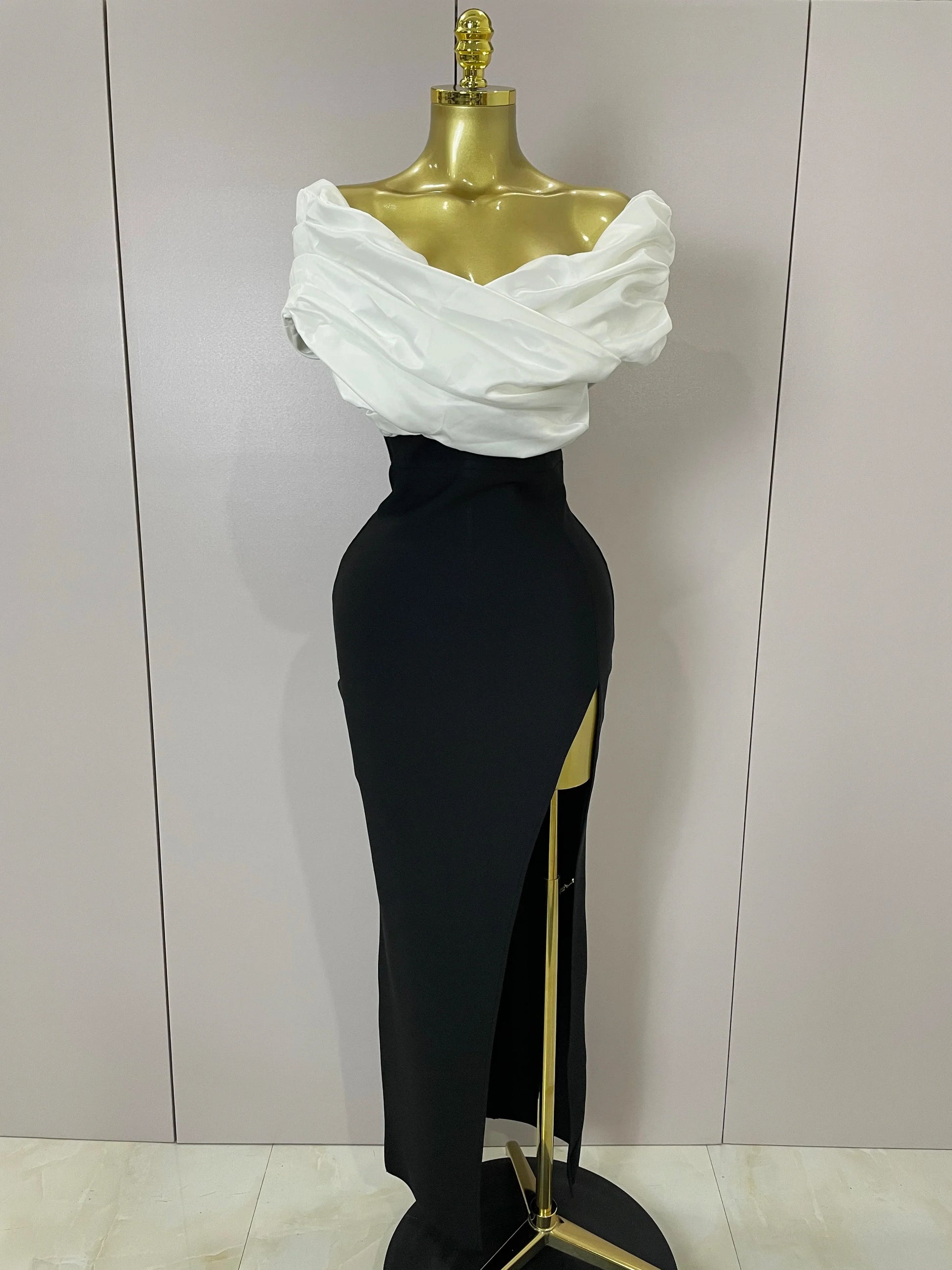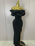 Sexy Off-Shoulder Side Slit Solid Color Pleat Skirt Strapless Bandage Women Evening Luxury Birthday Formal Party Dress